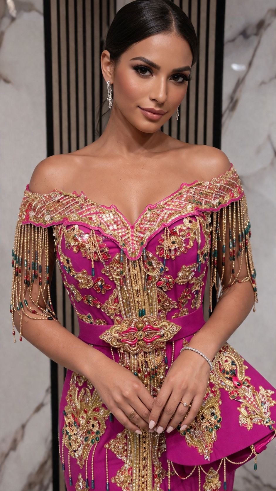 The Model is digital Generated. Video shows the real dress